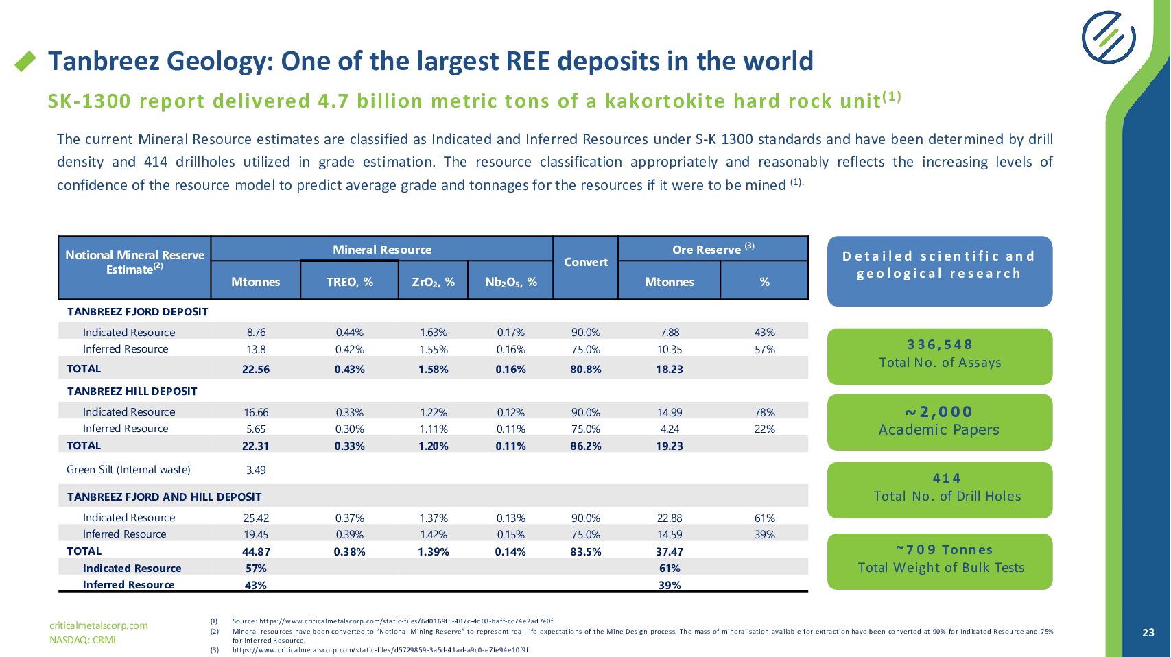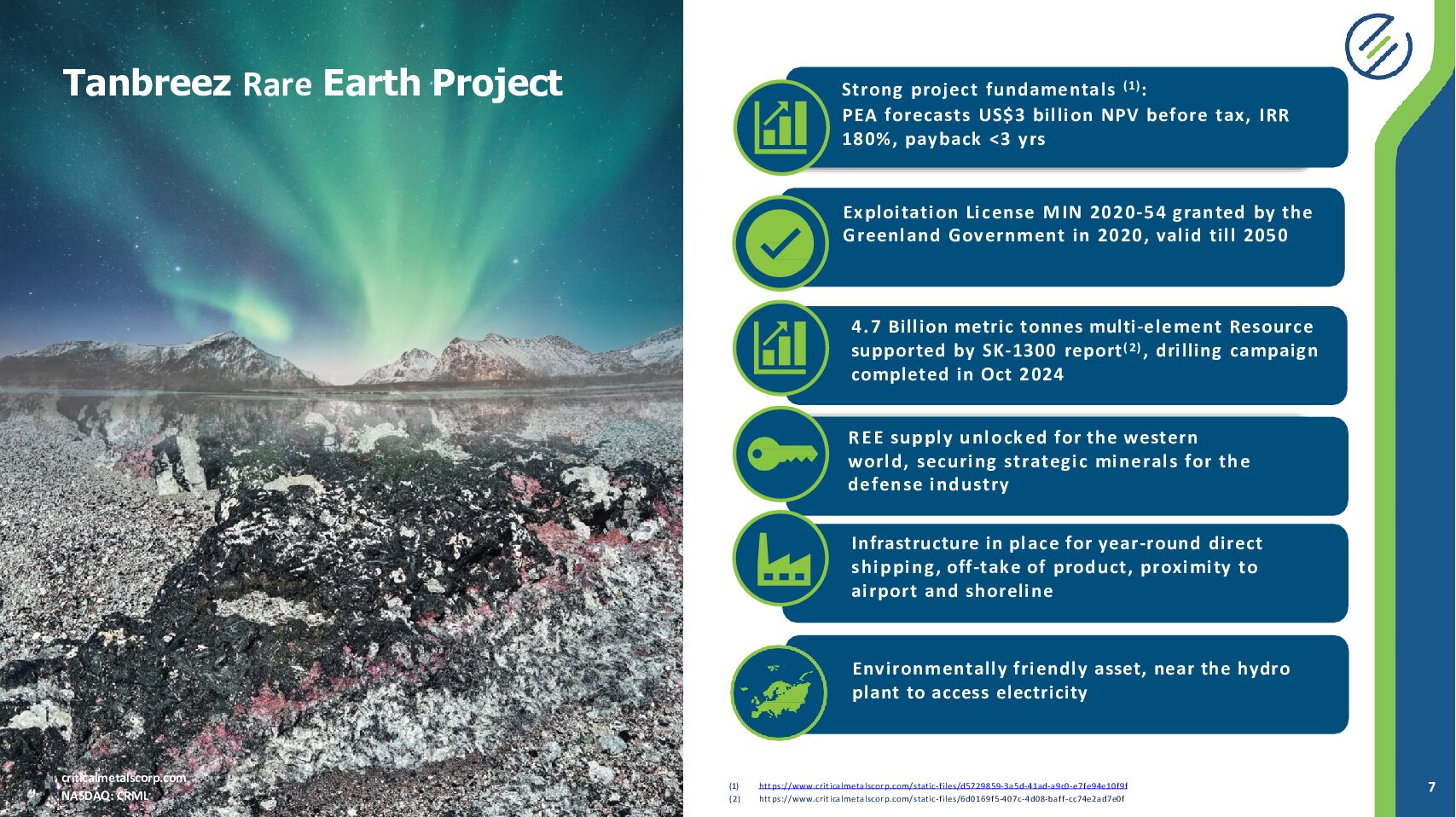 In addition to its scale and strategic HREE mix, the Tanbreez Project benefits from its significant geological advantages, including a well-defined resource base, strong permitting position, and low environmental impact. This project is not just a critical mineral source—it is a long-term solution that aligns with global sustainability goals and the geopolitical need for secure, local supply chains of rare earths for the next 100 years.